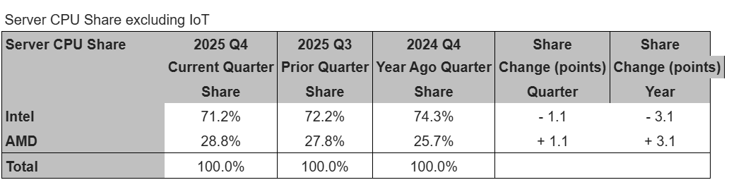 - PCWorld reports that Intel’s supply constraints and strategic focus on higher-margin server processors in Q4 2025 created an opportunity for AMD to capture record market share.